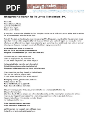 Bhagwan Hai Kahan Re Tu Lyrics Pk Movie Song Lyrics Swanand kirkire is known for.