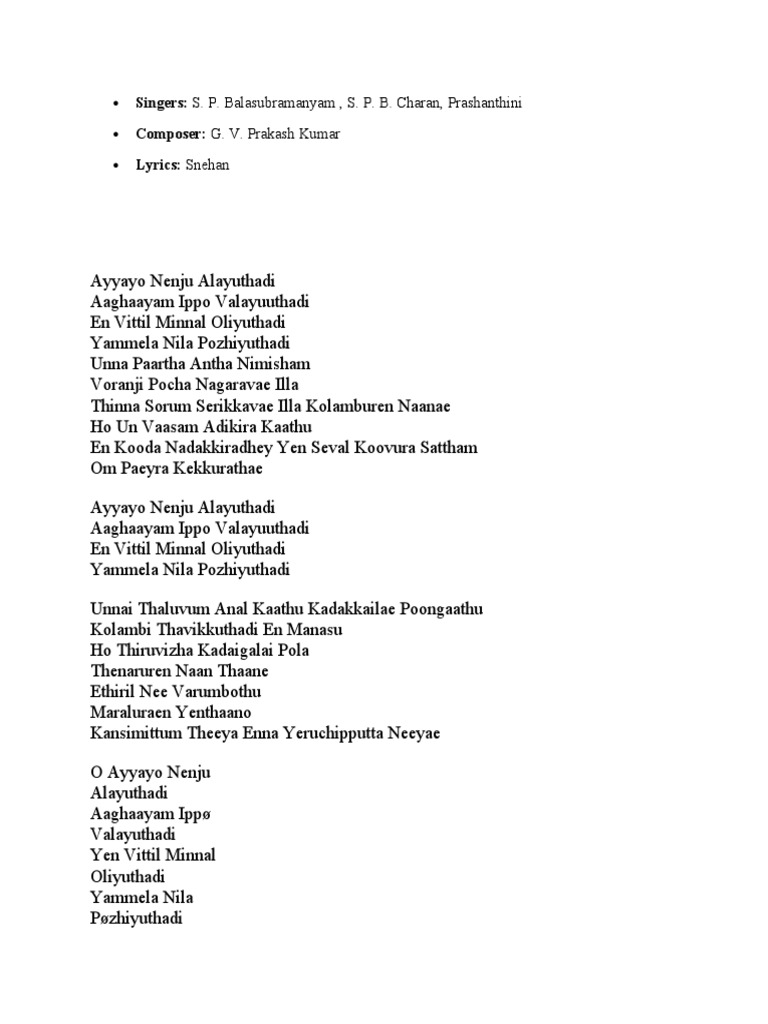 Ayyayo Nenju Short Lyrics And Music By G V Prakash Kumar Arranged By Muhesh Ayyayo nenju song download masstamilan,aadukalam movie ayyayo nenju mp3 songs download masstamilan,download ayyayo nenju tamil 320kbps,128kbps at masstamilan.io.