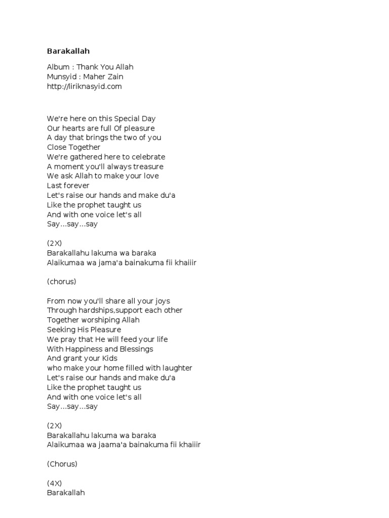 Baraka Allahu Lakuma : From now you'll share all your chores through baraka allahu lakuma wa baraka alikuma wa jamaah baina kuma fee khair.