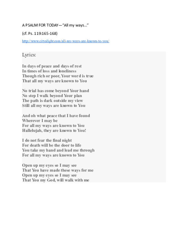 Cityalight All My Ways Are Known To You : Listen to all my ways are known to you on spotify.